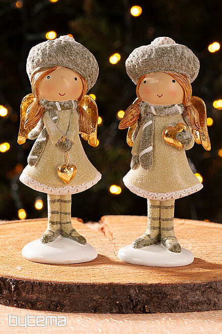 Dva anđela u beretki koja podsjeća na žir s drveta. Figurica vile je zapravo lutka s kikicama koja u rukama nosi srce. Haljina joj je svjetlucava s čipkastim obrubom. Krila i srce su zlatni. Anđele nudimo u miksu, jedan nosi srce na prsima, a drugi ima srce spušteno na uzici do haljine. Oba anđela se smiješe i evociraju zimsko-božićno raspoloženje.