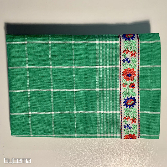 Mekane pamučne kuhinjske krpe s kariranim uzorkom i cvjetnim obrubom na dnu. Prekrasan i nježan ukras za vašu kuhinju.