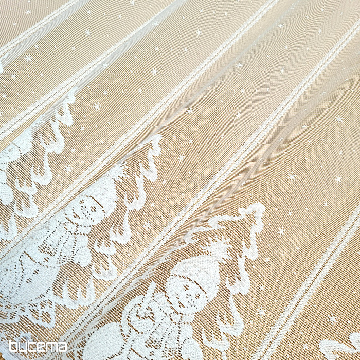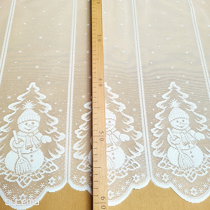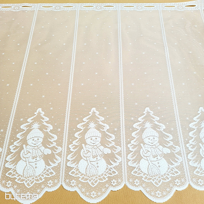 Prekrasna i jedinstvena jacquard božićna zavjesa od vitraja sa snjegovićima.
