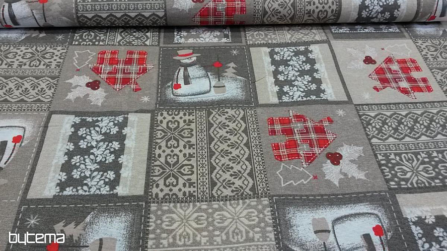 Dekorativna božićna tkanina sa srcima u tri varijacije boja, prekrasna tkanina za interijere u rustikalnom i seoskom stilu.