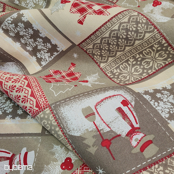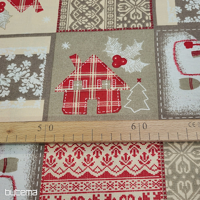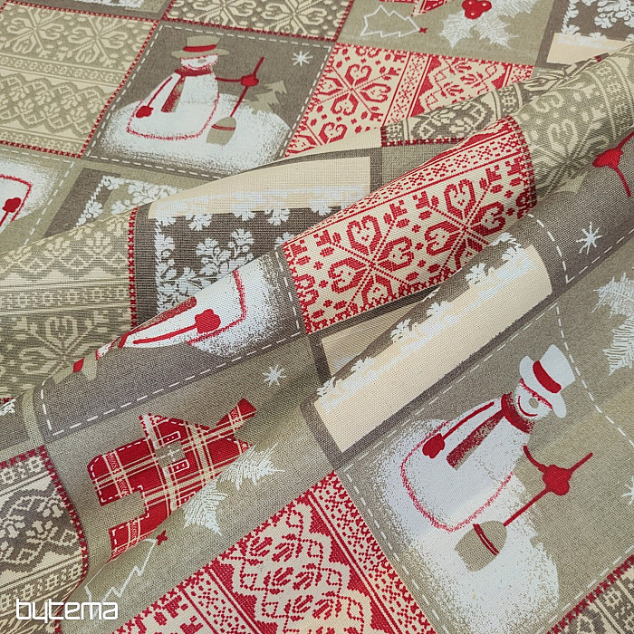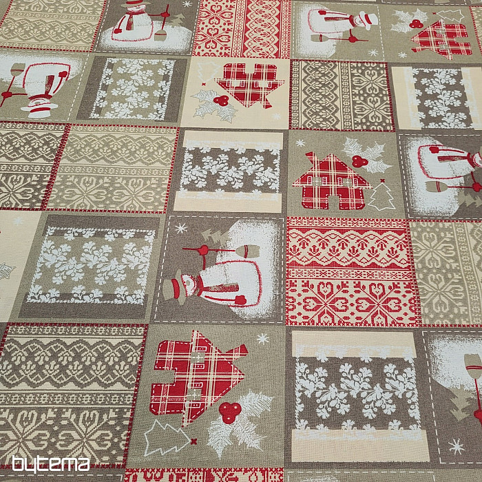 Božićna ukrasna tkanina s motivom snjegovića, kućice i čipke bit će prekrasan božićni ukras u snježno zimsko vrijeme. Patchwork uzorak će vas oduševiti.