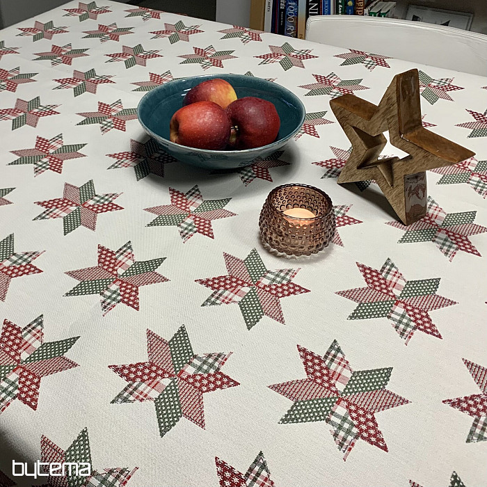 Božićni stolnjak ili šal sa zvijezdom izrađen od luksuzne tkanine s patchwork dizajnom također je simbol Božića. Uklapa se u sve interijere, posebno u hladnije godišnje doba.