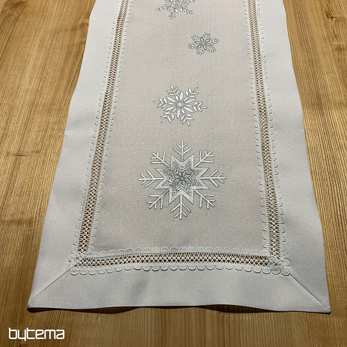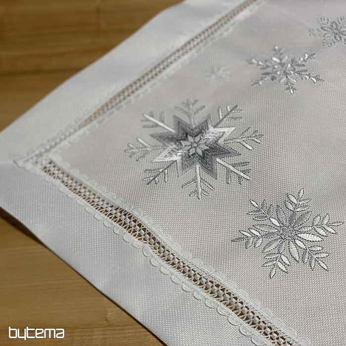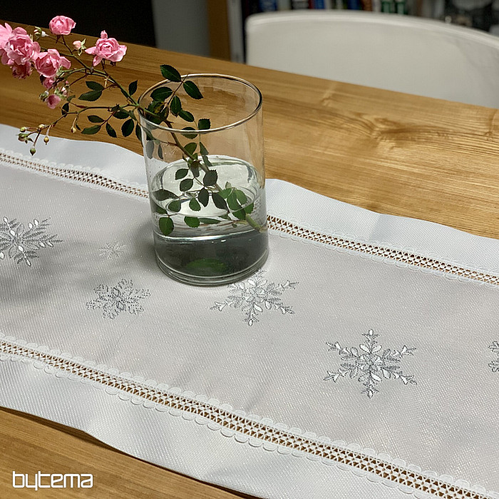 Božićno savršenstvo u obliku bijelog stolnjaka s izvezenim srebrnim pahuljicama krasit će vaš blagovaonski stol tijekom svih blagdana.
