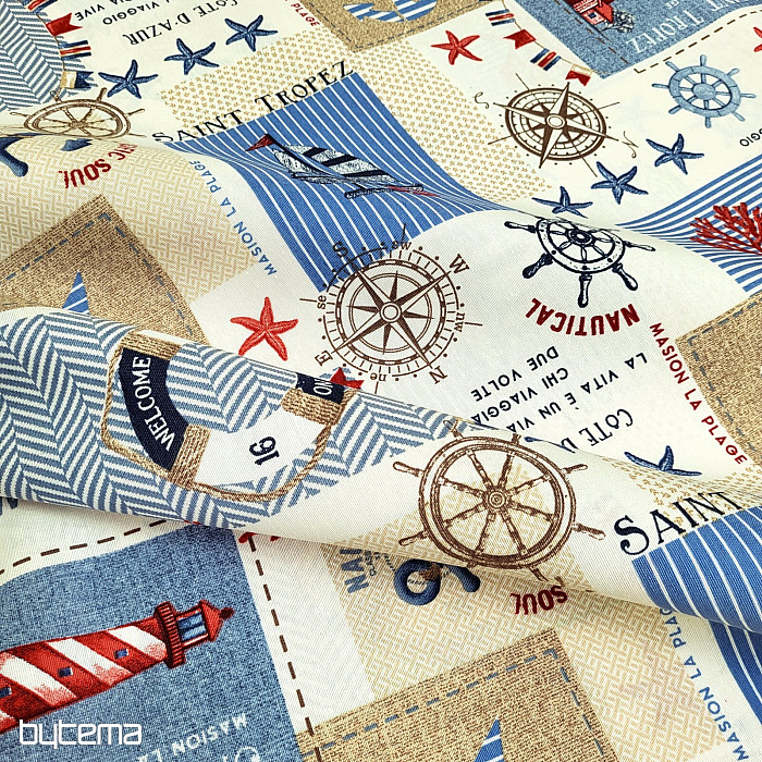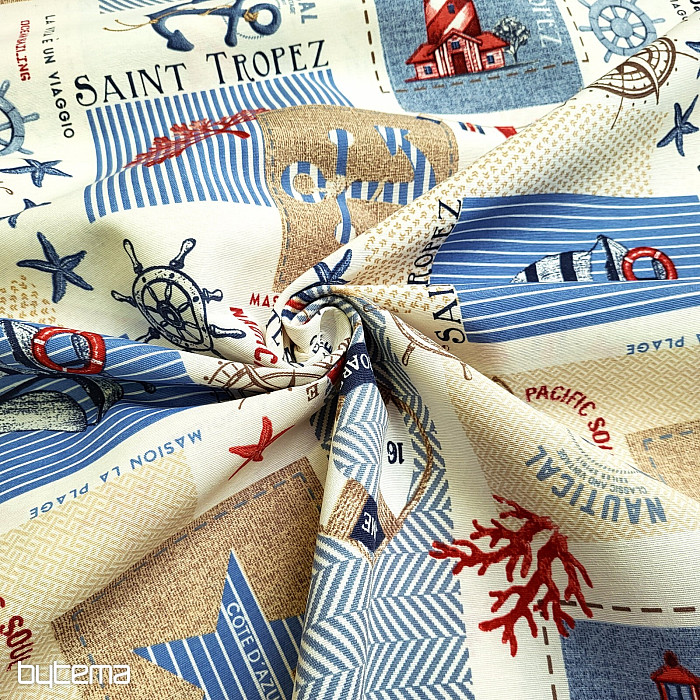 Dekorativna tkanina s nautičkim motivom. Prekrasan ljetni ukras za sve ljubitelje mora i dalekih krajeva.