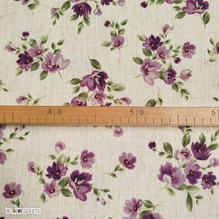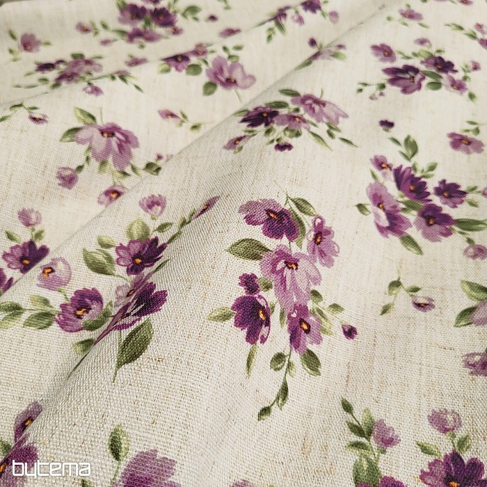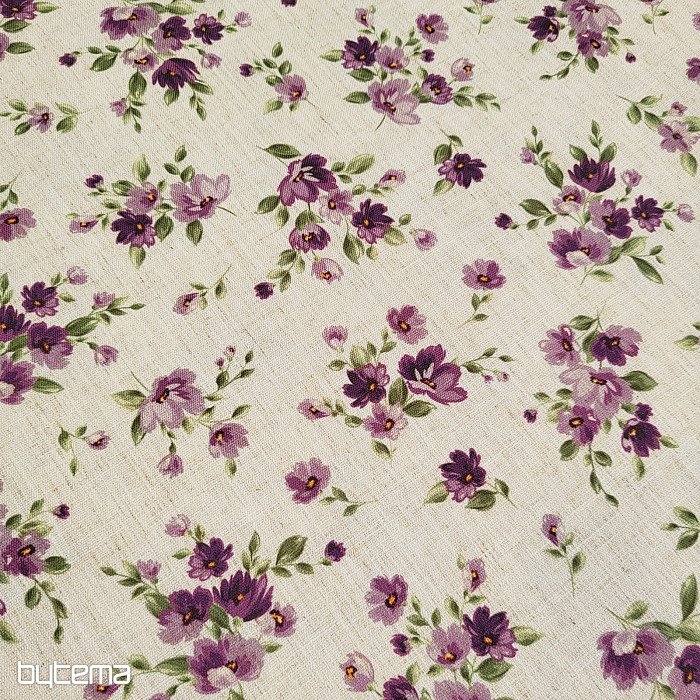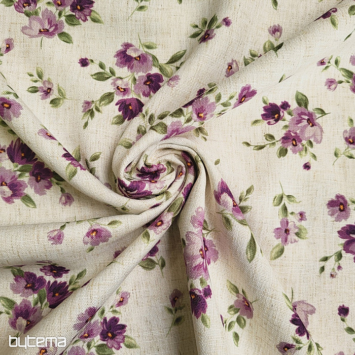 Dekorativna tkanina s proljetnim cvijećem u tamnoljubičastoj boji ukrasit će vašu kuhinju i pergolu.