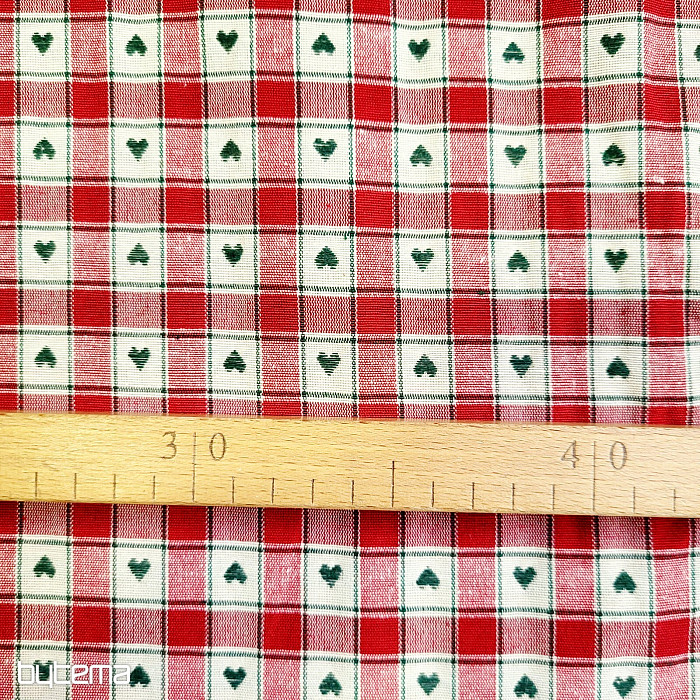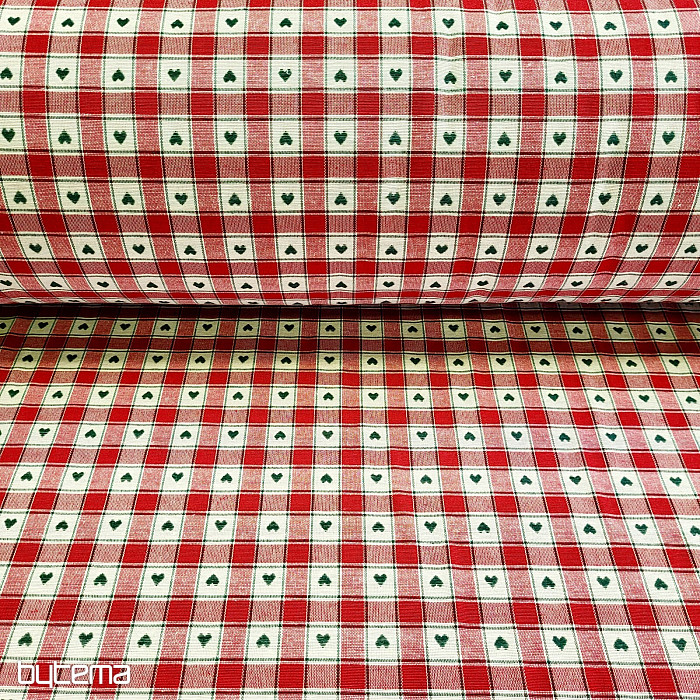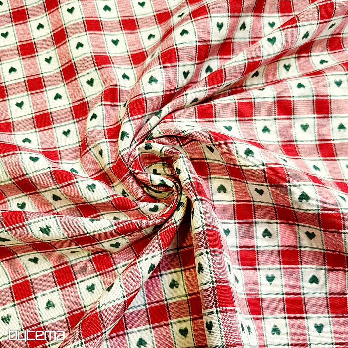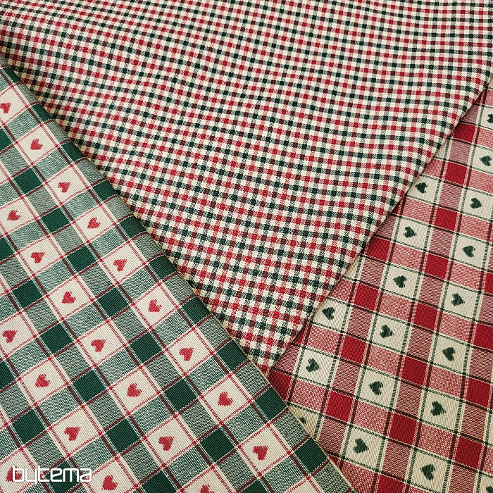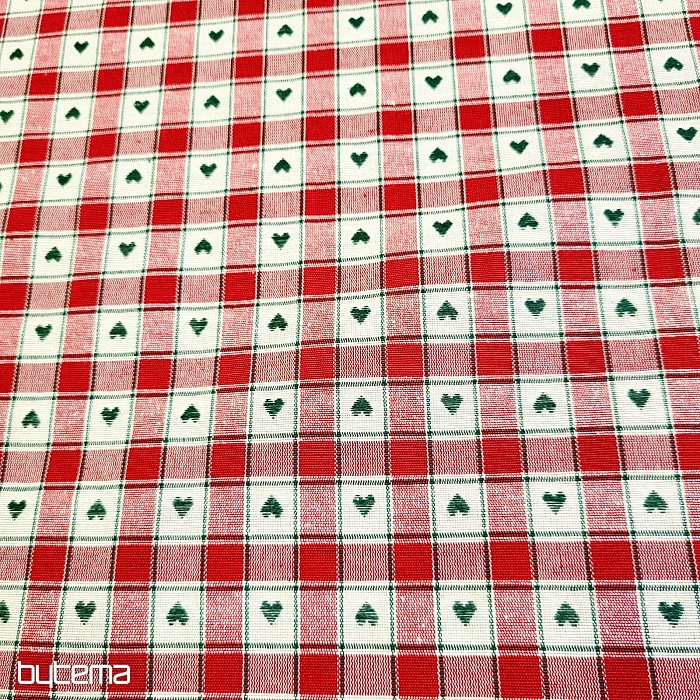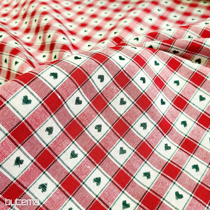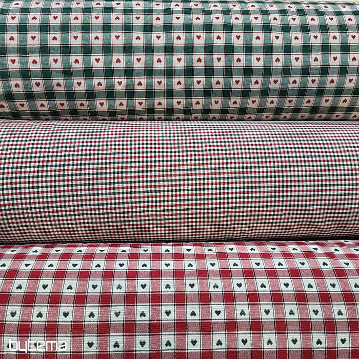 Dekorativna tkanina u uzorku šahovnice i srca savršena je za seoske kućice i brvnare.