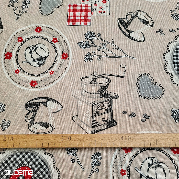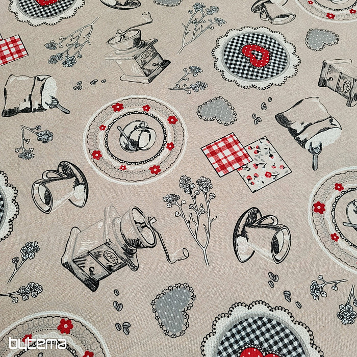 Dekorativna tkanina s dizajnom mlinova za kavu i gotove kave bit će prekrasan ukras za vašu kuhinju.