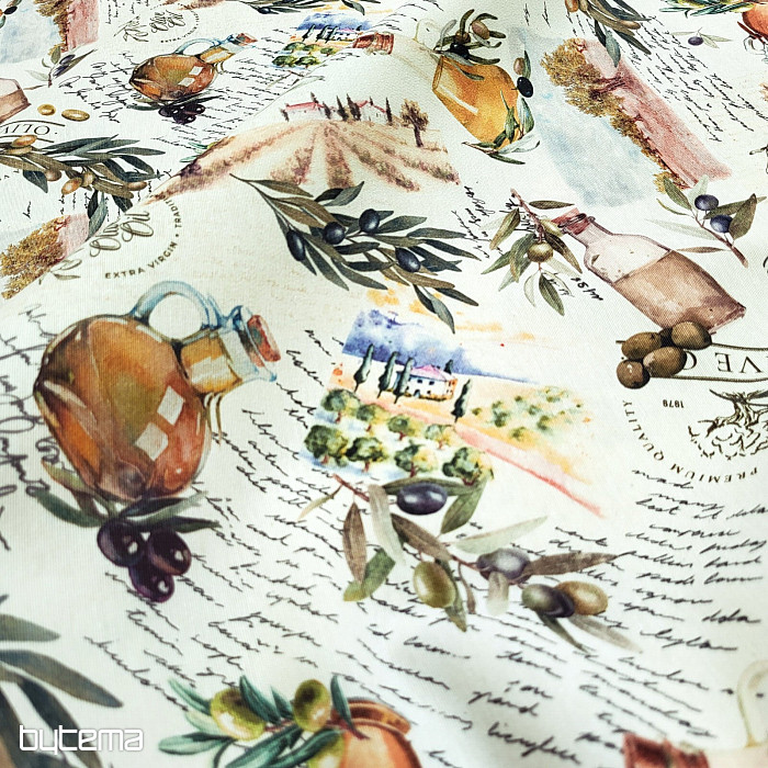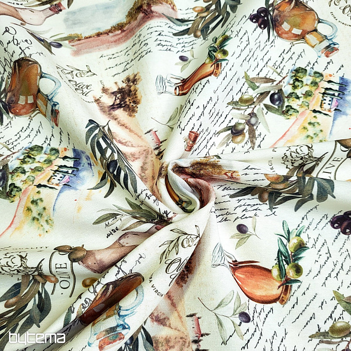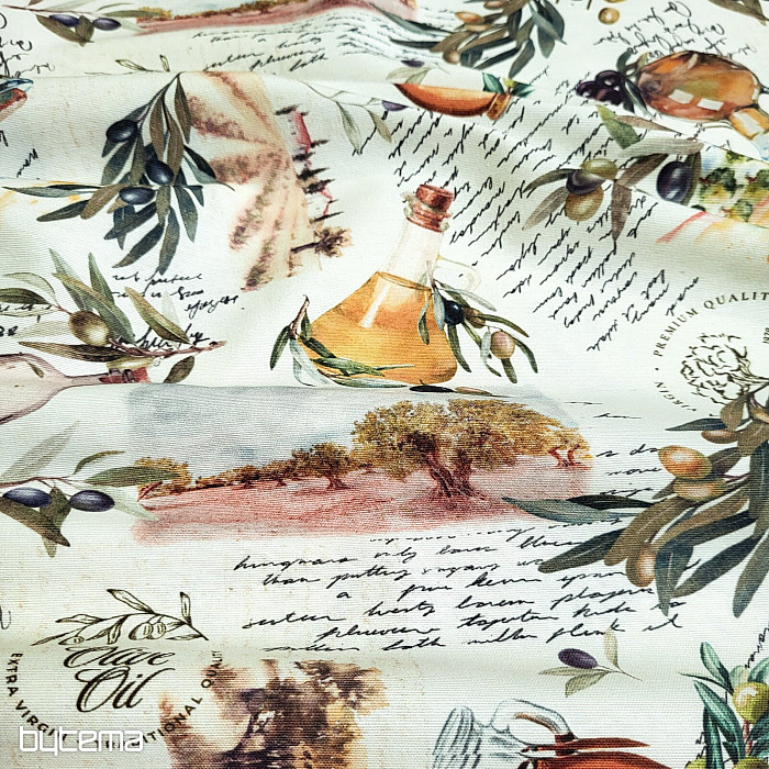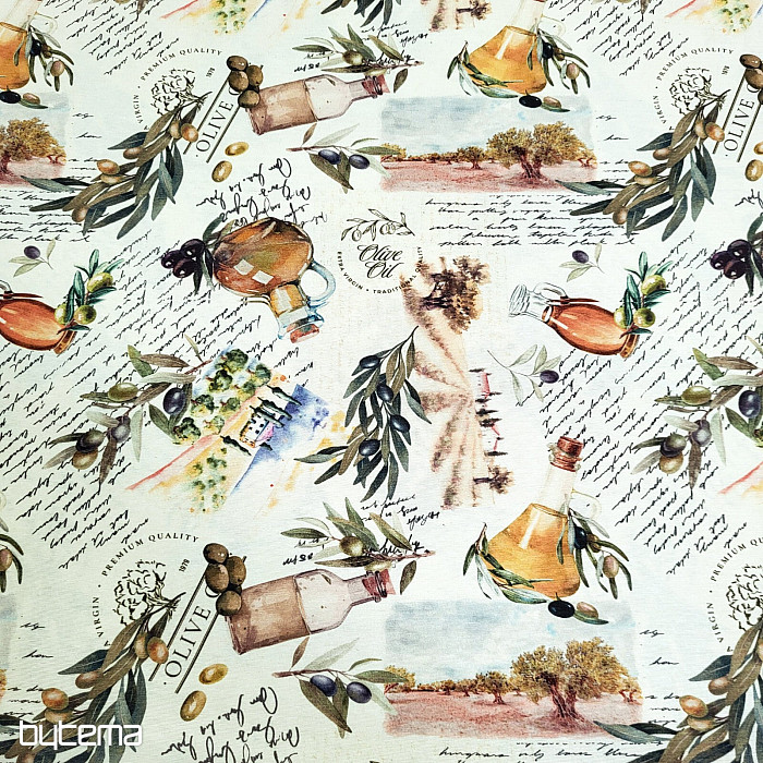 Dekorativna tkanina s motivom masline ima svjež, mediteranski izgled i prikladna je za kuhinju, blagovaonicu ili ljetne dekoracije.