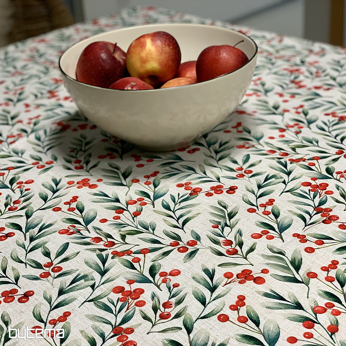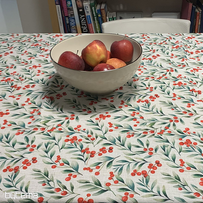 Prekrasan stolnjak netipične veličine s crvenim bobicama savršen je za božićno vrijeme. Ali ukrasit će vaše sobe ne samo tijekom božićnog vremena.