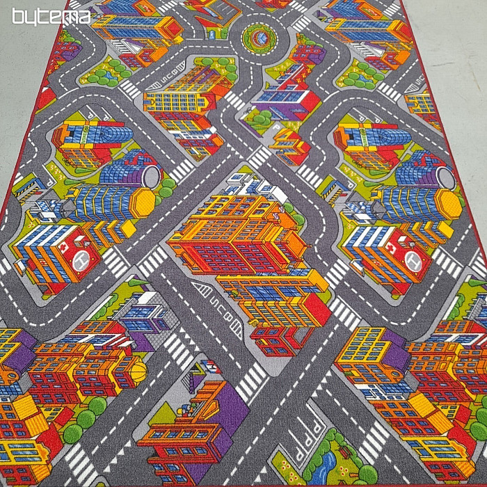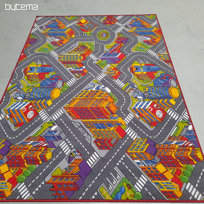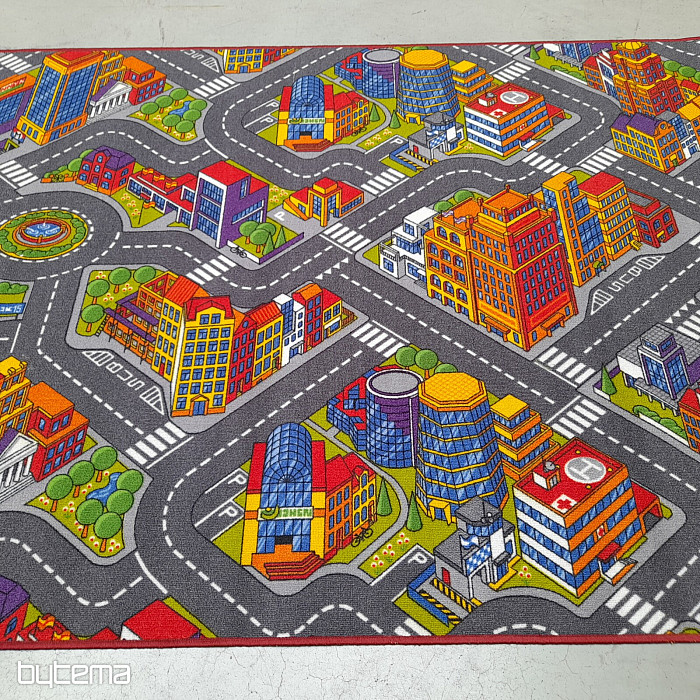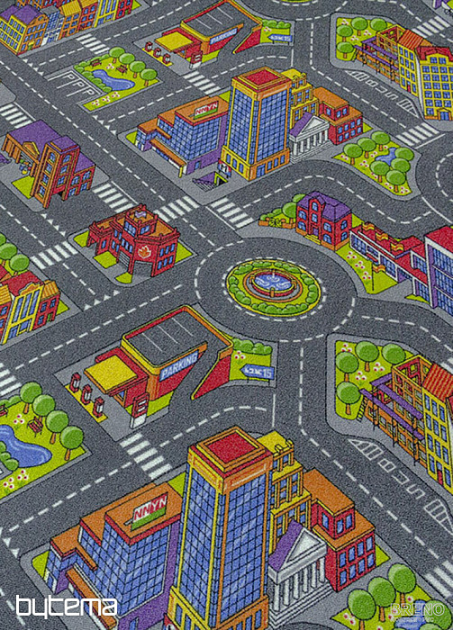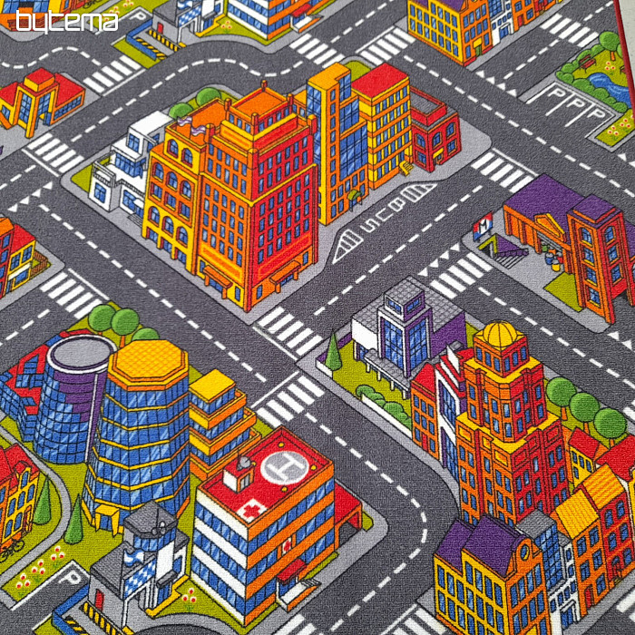 Dječji komadni tepih simulira gradove i sela s nizom cesta i staza. Izrađen je od poliamida koji je vrlo izdržljiv. Zahvaljujući niskoj dlaci, lako se održava.