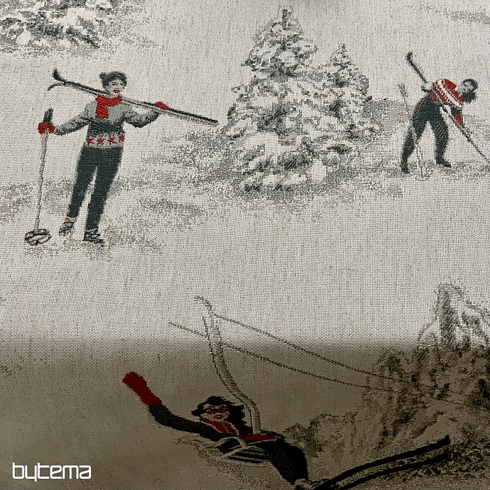Zimsko skijanje i sve oko toga glavni je motiv ove luksuzne tkanine. Lijepo pristaje na svaki stol u planinskim kolibama ili brvnarama.