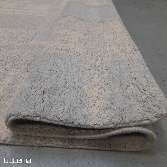 Luksuzni belgijski tepih u pastelnim bojama s 3D geometrijskim uzorcima. Plastični efekt stvara se različito raspoređenim florom, koji je izrađen od ovčje vune. To jamči tepihu visoku otpornost i trajnost.