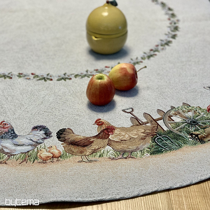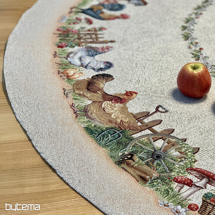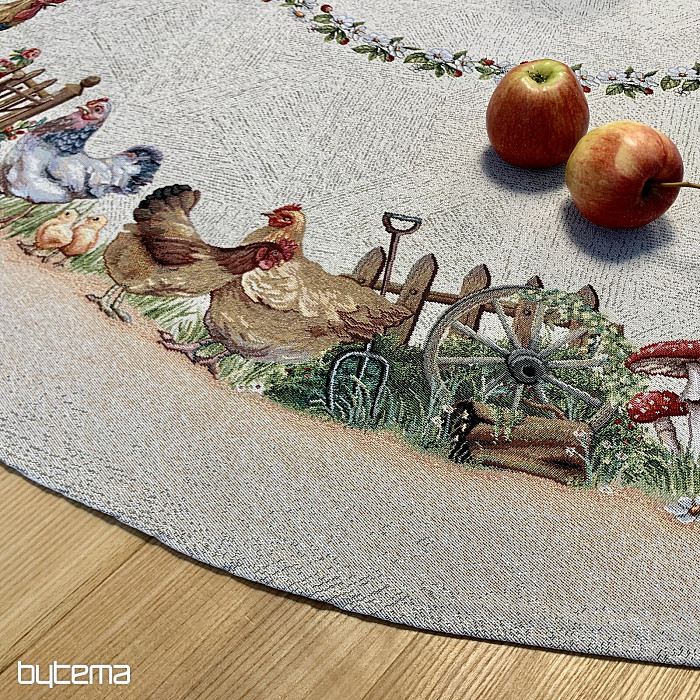 Okrugli stolnjak izrađen od čvrste tapiserije oduševit će svakog poljoprivrednika ili ljubitelja životinja.