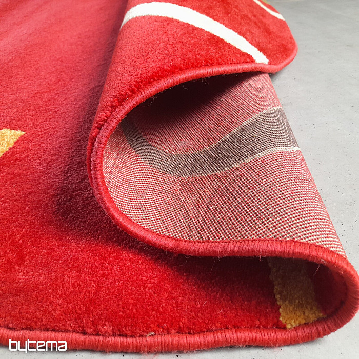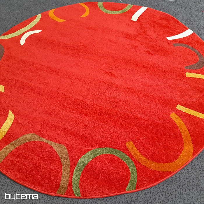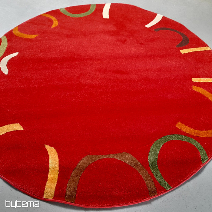 Rijedak komad kružnog tepiha u bogatim bojama, gdje prevladava jarko crvena.