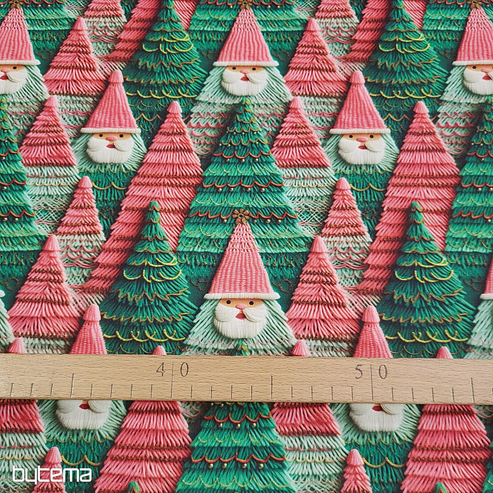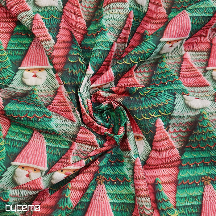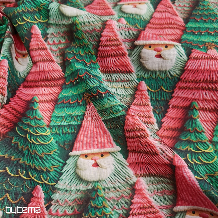 Božićna ukrasna tkanina sa slatkim licem vilenjaka Arthura izgubljenog u šumi. Tkanina je prikladna za šivanje stolnjaka, zavjesa i jastučnica.