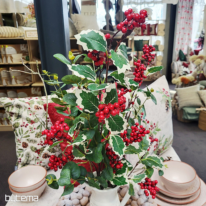 Dekoracija za zimsku sezonu. Grančica duga 90 cm ima tamnocrvene bobice koje su savršene za unutarnju i vanjsku dekoraciju.