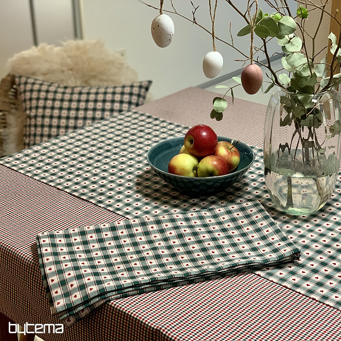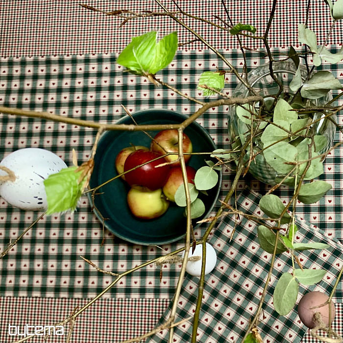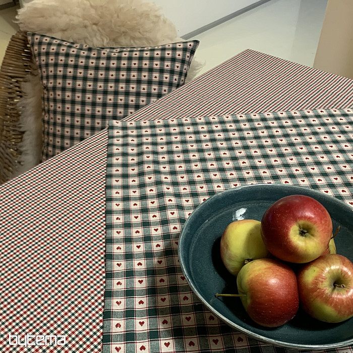 Dekorativni stolnjak i šal u kariranom i srcolikom dizajnu savršeni su za seoske kućice i brvnare.