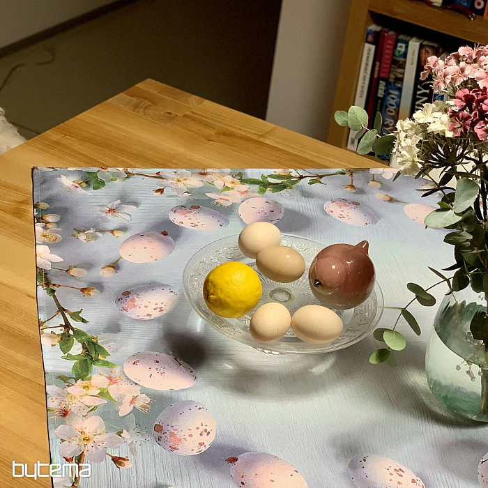 Moderni jednostavni uskrsni stolnjaci i šalovi s motivom cvijeta trešnje i jajeta.