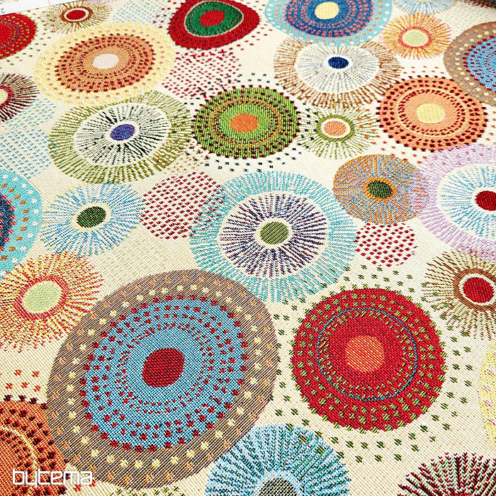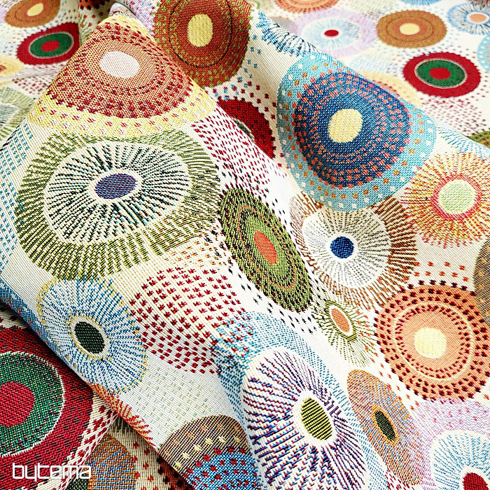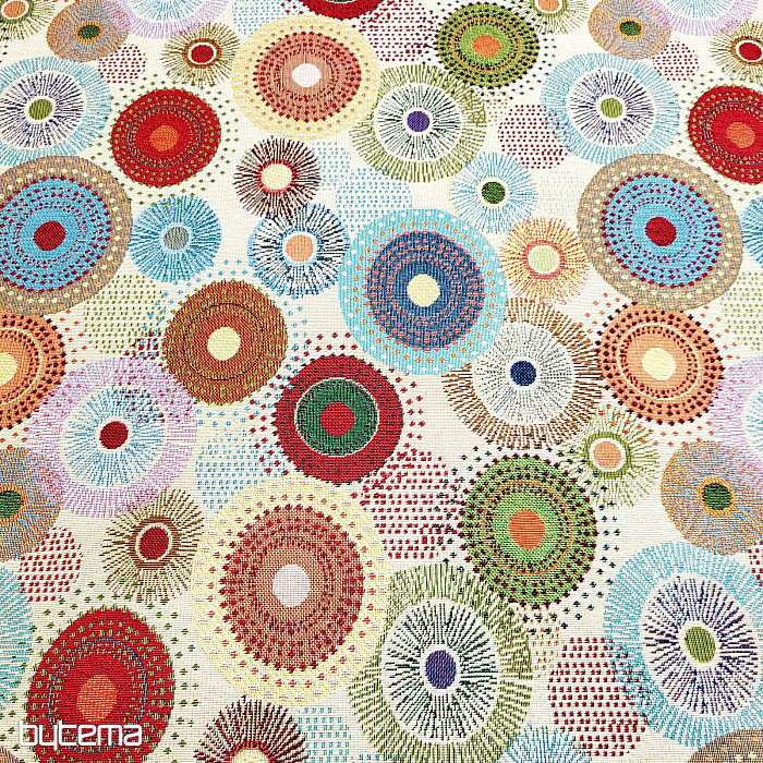 Tapiserija sa šarenim mandala kotačićima je naš novi dodatak trgovini. Suptilne, ali žive boje dodaju eleganciju tkanini.