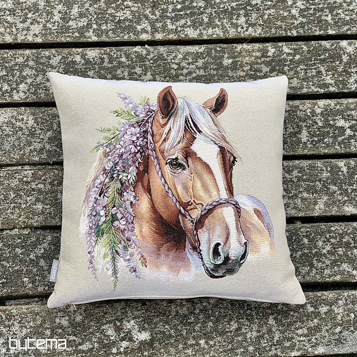 Tapiserijska jastučnica s romantičnim konjem. Prekrasan i nježan ukras za ljubitelje konja. Pogodno kao savršen poklon.