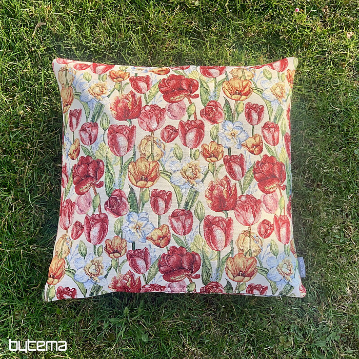 Prekrasna tapiserija s proljetnim cvijećem tulipana i narcisa. Prekrasna šarena poplava cvijeća i proljeća u vašem domu.