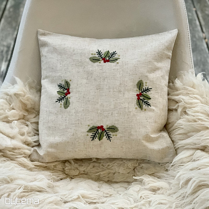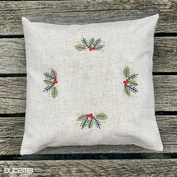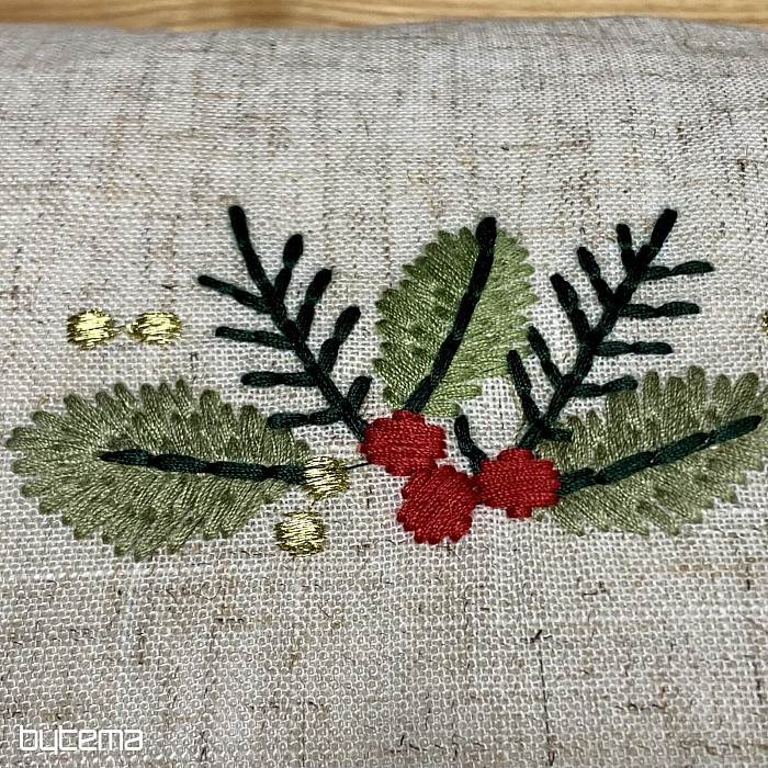 Ovaj vezeni prekrivač s božićnim grančicama bit će prekrasan dodatak vašem domu. Uzorak je izvezen samo na prednjoj strani.