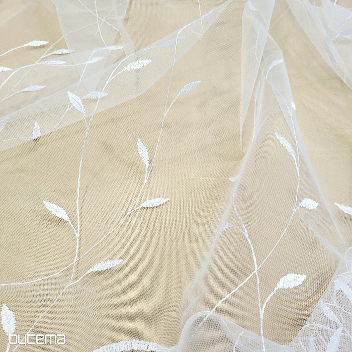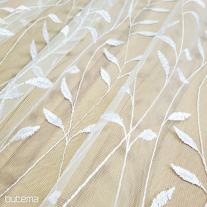 Zavjesa s izvezenim obrubom koji je po cijeloj površini, prekrasni, nježni, diskretni listovi.