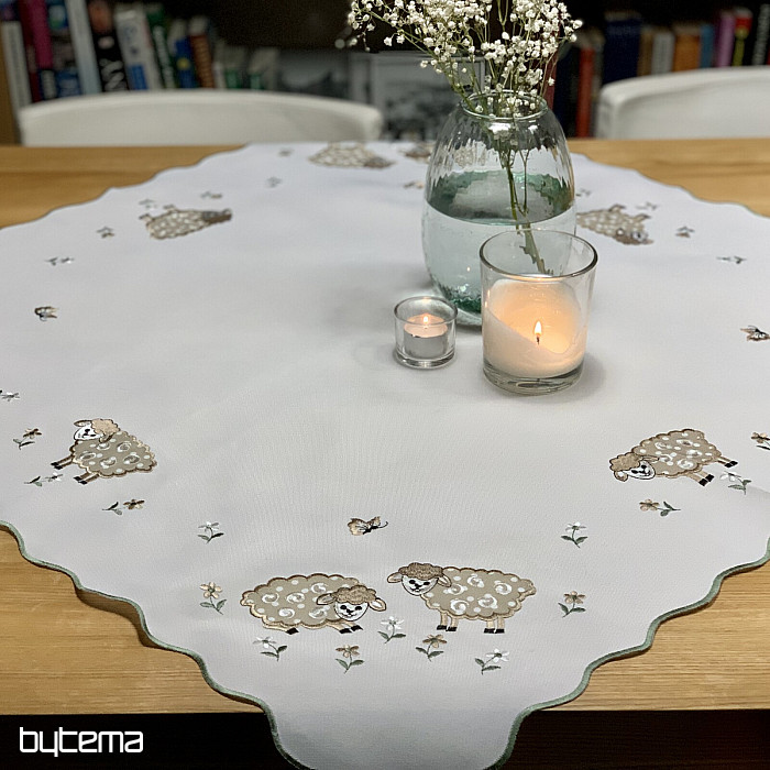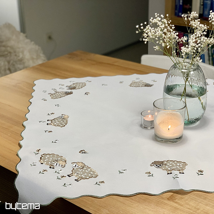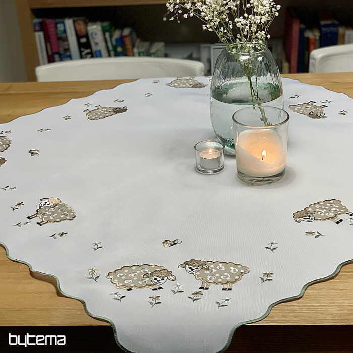 Vezeni stolnjak i šal s motivom ovce stvorit će lijepo uskrsno raspoloženje.