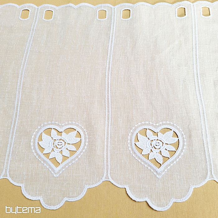 Zavjesa visoka 70 cm ima malo izvezeno srce u sredini.