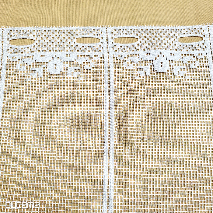 Zavjesu nudimo u četiri veličine visine. Sve veličine imaju ušice za navijanje na vitražnu šipku. Zavjesa je izrezana na panele, nije je potrebno šivati.