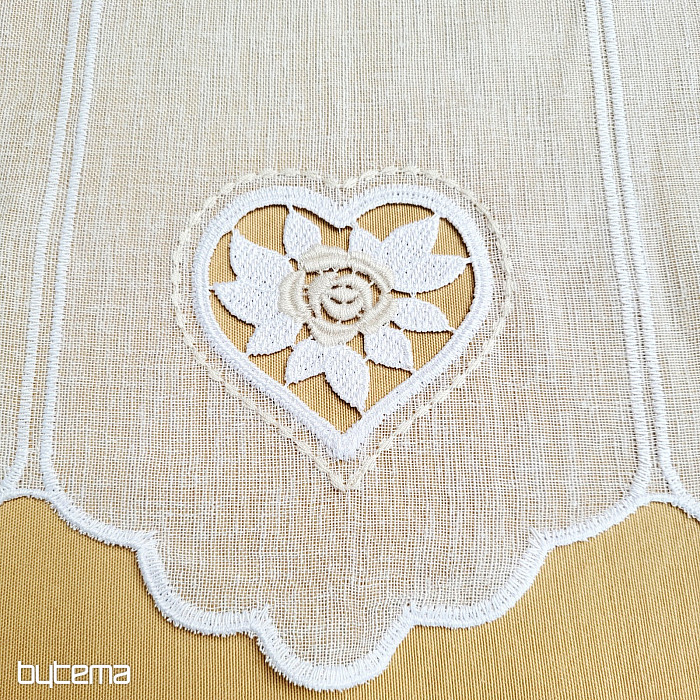 Zavjesa visoka 70 cm ima malo izvezeno srce u sredini.