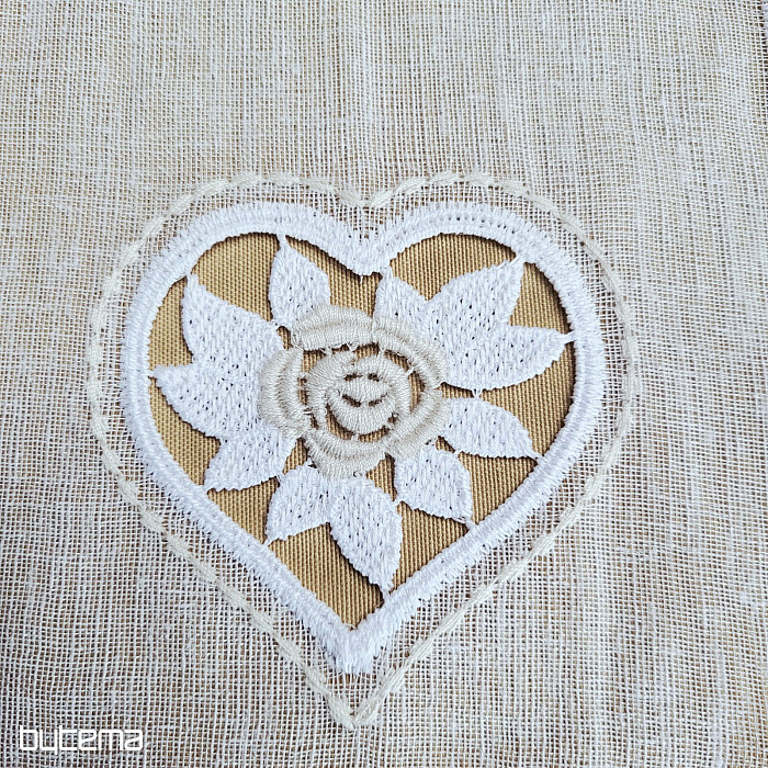 Prekrasna vintage zavjesa s izrezbarenim bež i bijelim srcem. Zavjesa izgleda vrlo mekano i ugodno, pogodna za drvene prozore ili male prozore.